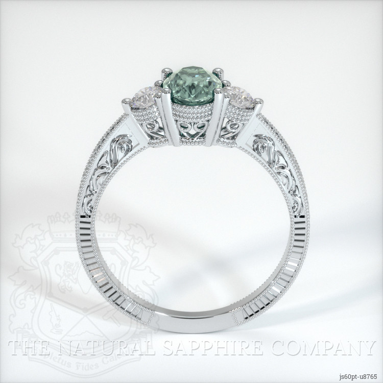 Antique Style Bluish Green Sapphire Ring 0.80 Ct., Platinum 950