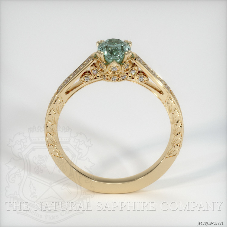 Antique Style Bluish Green Sapphire Ring 0.84 Ct., 18K Yellow Gold