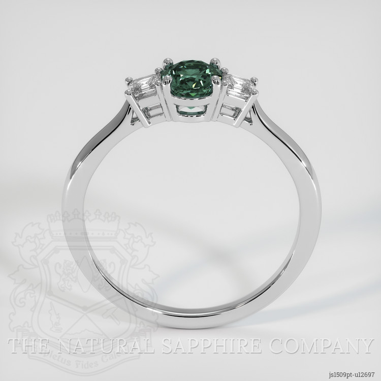 Three Stone Bluish Green Sapphire Ring 0.92 Ct., Platinum 950
