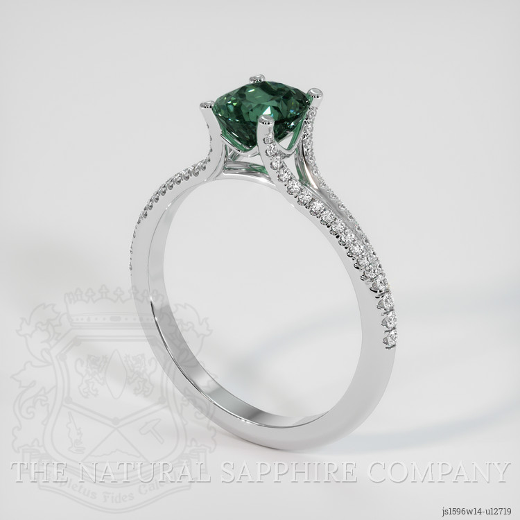 Pave Bluish Green Sapphire Ring 0.96 Ct., 14K White Gold