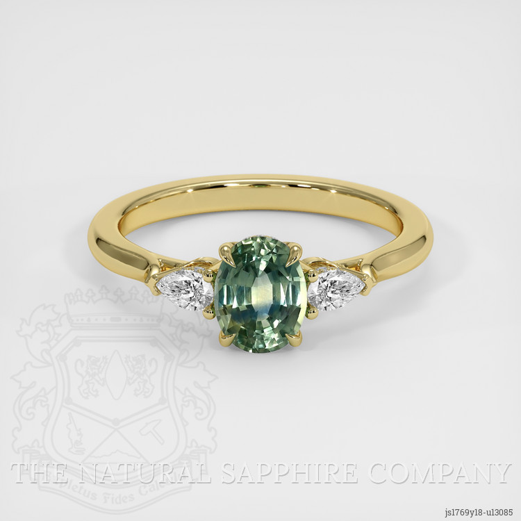 In the gentle embrace of nature’s artistry, The Natural Sapphire Company unveils a masterpiece—a ring where the heavens have been meticulously captured in a singular, dazzling gem. Set at the heart of this exquisite creation is a 1.14 carat bluish-green sapphire, as serene as a distant mountain lake shrouded in morning mist. Its oval shape, a testament to timeless elegance, unfolds like a lover's whispered promise—a promise accentuated by the mixed brilliant cut, which dances with light and shadow in a symphony of unparalleled clarity.
