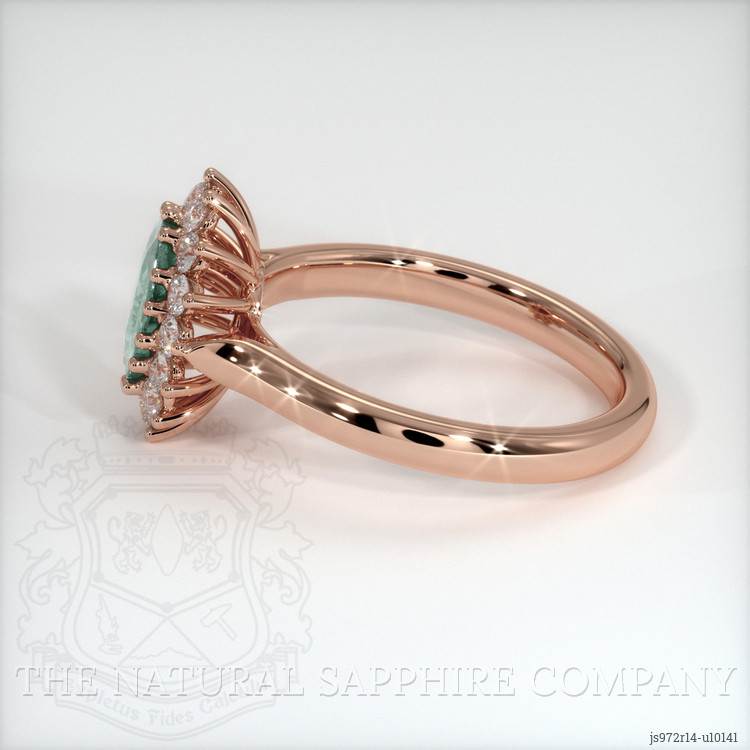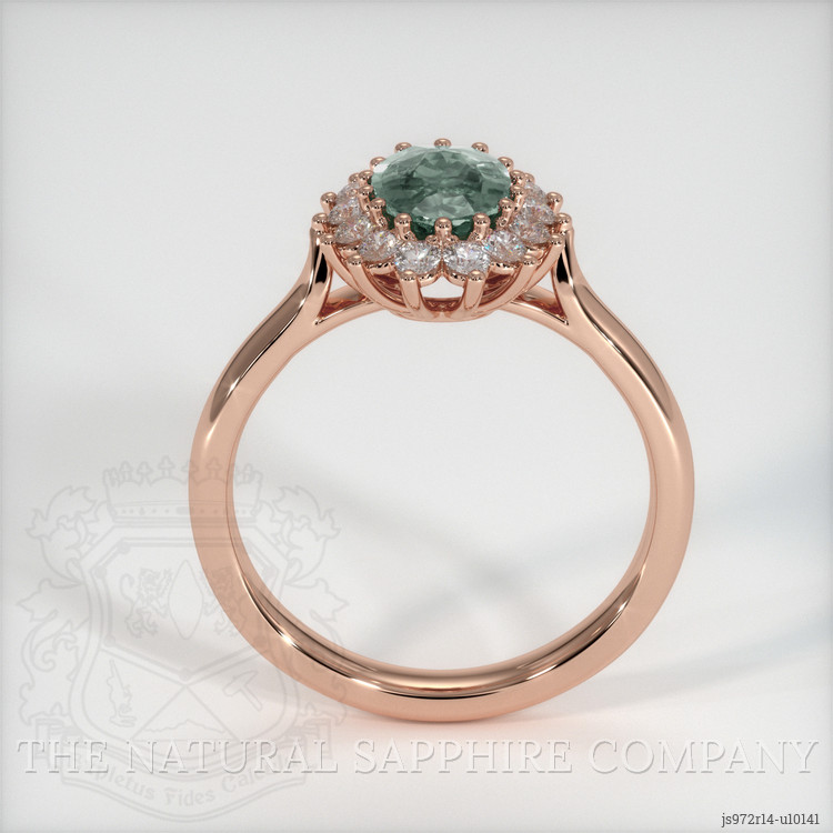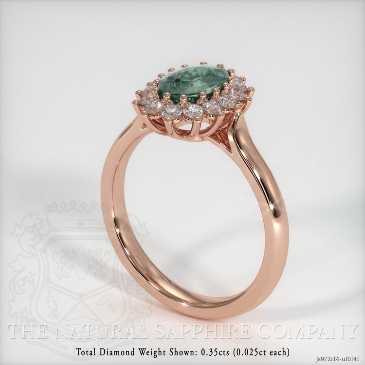 Halo Bluish Green Sapphire Ring 1.19 Ct., 14K Rose Gold