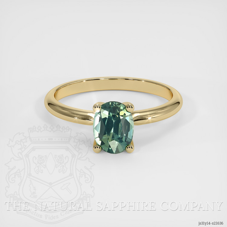 Solitaire Bluish Green Sapphire Ring 1.20 Ct., 14K Yellow Gold