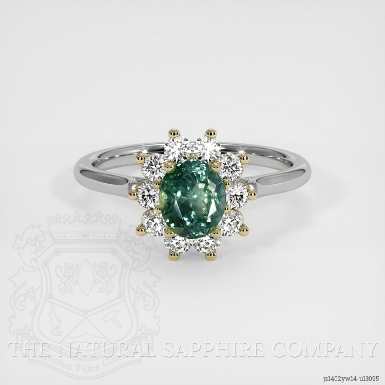 Nestled within the embrace of time-honored elegance, the exquisite ring from The Natural Sapphire Company is a testament to the enduring beauty of gemstones that have transcended centuries. This remarkable piece centers around a captivating 1.23 carat bluish-green sapphire, whose origins hail from the storied mines of Montana, a region renowned for producing sapphires of uncommon beauty and quality. The oval-shaped sapphire boasts an intricate mixed brilliant cut, designed to capture and reflect light with unparalleled brilliance. Its dimensions, 6.71 x 5.60 x 4.16 mm, manifest an ideal balance, ensuring its prominent yet graceful presence on the hand. Its intense color saturation, heightened by expert heat treatment, evokes the natural splendor of tranquil lakes under a midsummer sky.