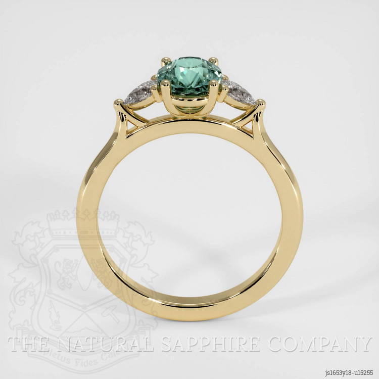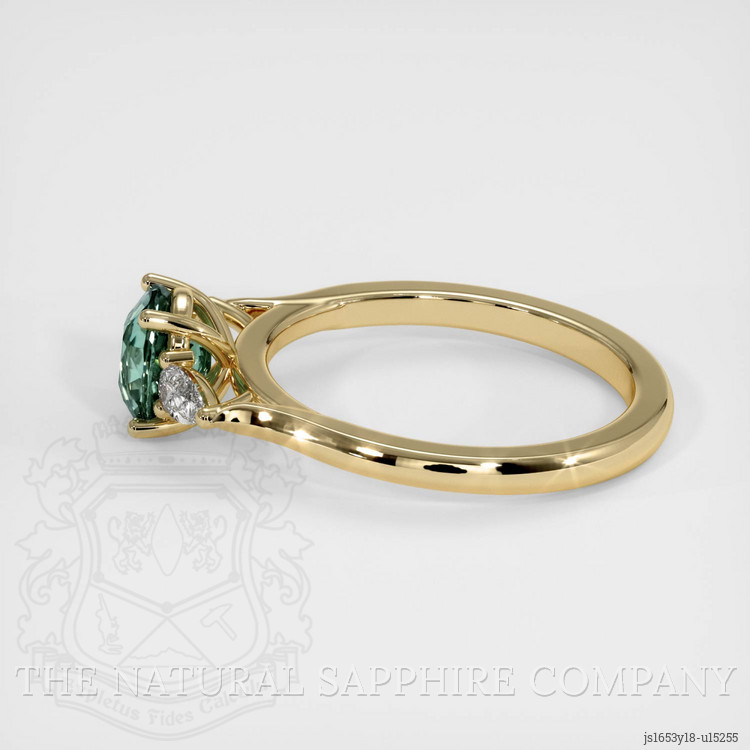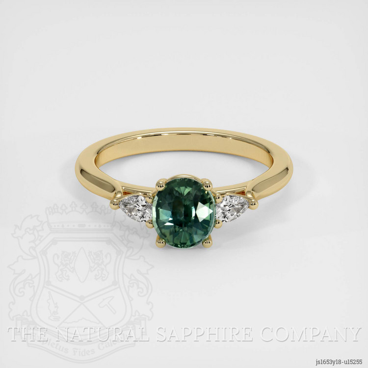 Three Stone Bluish Green Sapphire Ring 1.29 Ct., 18K Yellow Gold