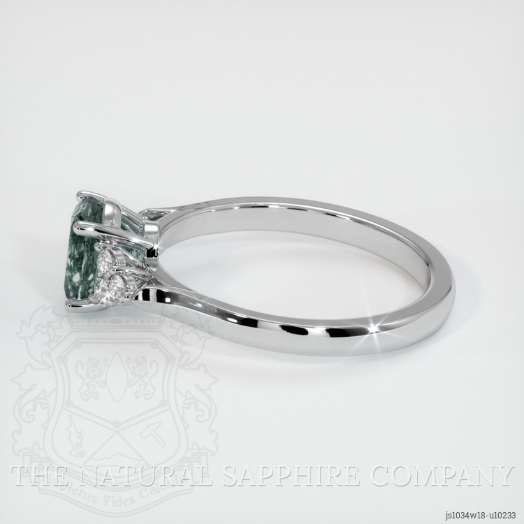 Accent Stones Bluish Green Sapphire Ring 1.34 Ct., 18K White Gold