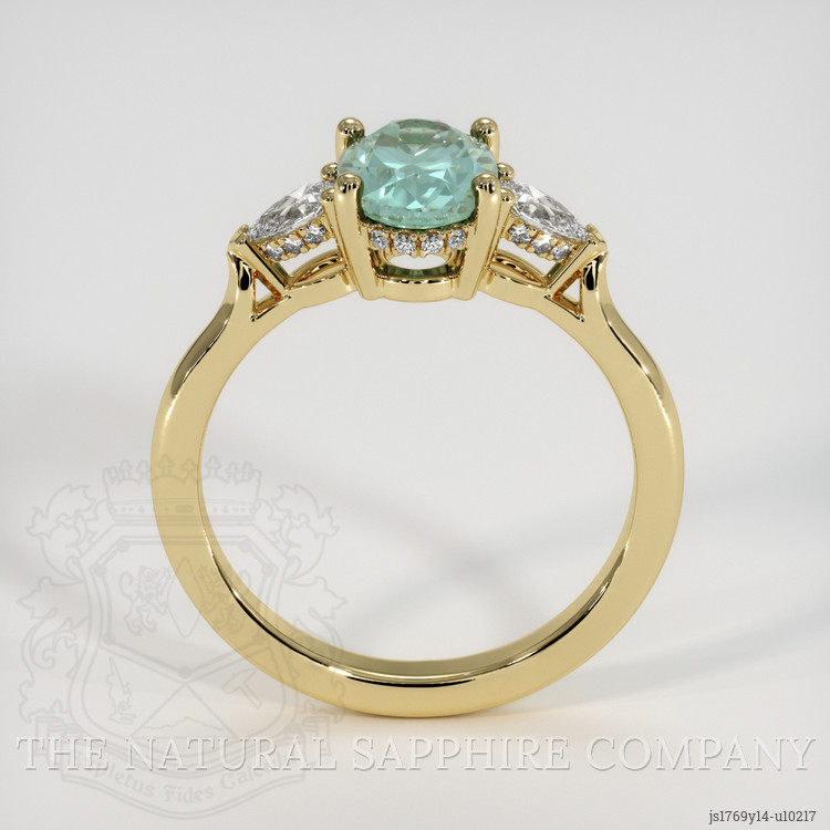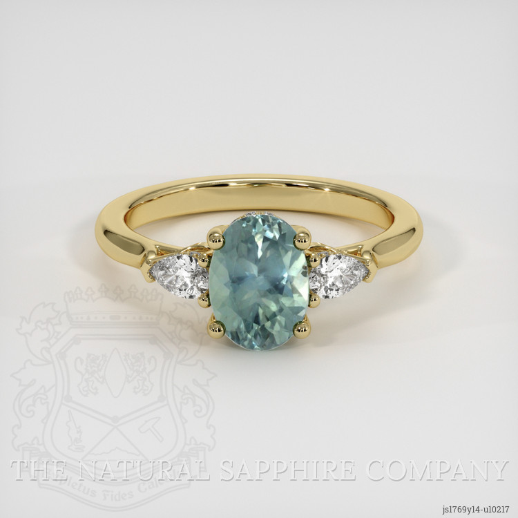 The Natural Sapphire Company is proud to present a masterpiece of timeless elegance and unsurpassed beauty. This exquisite ring, featuring a luxurious 1.38 carat oval-shaped bluish green sapphire, captures the rich heritage and magical allure that only precious gemstones from Montana can offer. Measuring 7.63 x 5.57 x 4.05 mm and crafted with a mixed brilliant cut, this sapphire exudes a unique charm with its medium intense color saturation and excellent polish. The delicate transparency and very slightly included clarity grade reveal a tantalizing glimpse into the stone's ancient origins, narrating a story that speaks of enduring elegance and an unparalleled connection to nature.