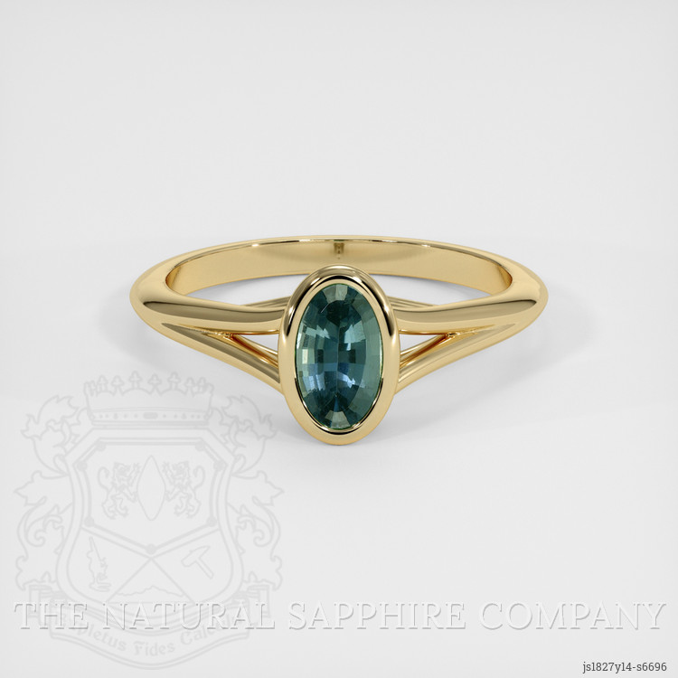 Bezel Bluish Green Sapphire Ring 1.45 Ct., 14K Yellow Gold