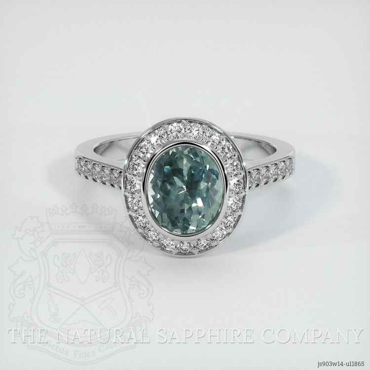 Pave Bluish Green Sapphire Ring 1.48 Ct., 14K White Gold