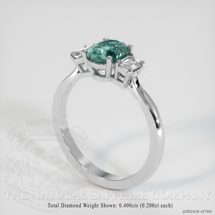 Three Stone Bluish Green Sapphire Ring 1.58 Ct., 18K White Gold