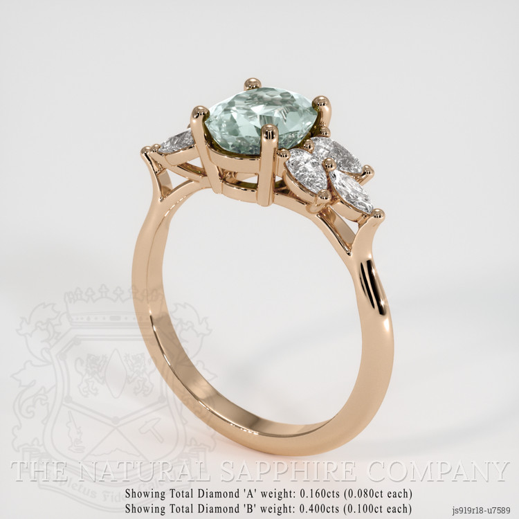 Accent Stones Bluish Green Sapphire Ring 1.79 Ct., 18K Rose Gold