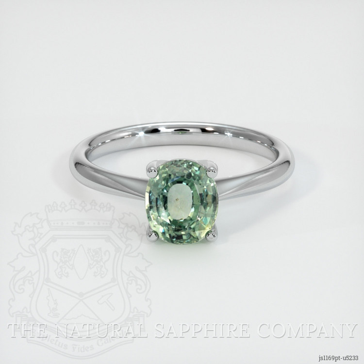Solitaire Bluish Green Sapphire Ring 1.82 Ct., Platinum 950