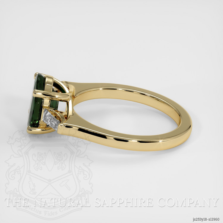 Three Stone Bluish Green Sapphire Ring 2.01 Ct., 18K Yellow Gold