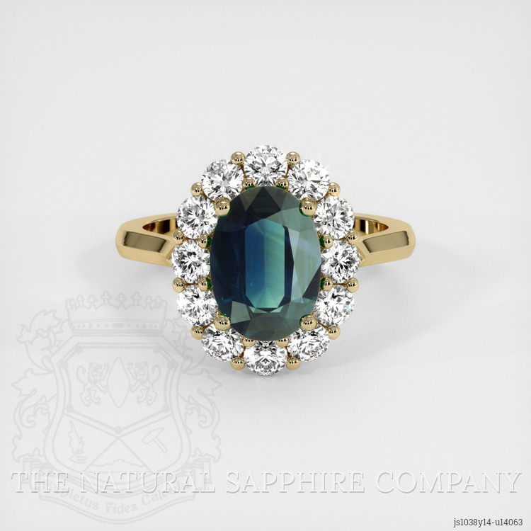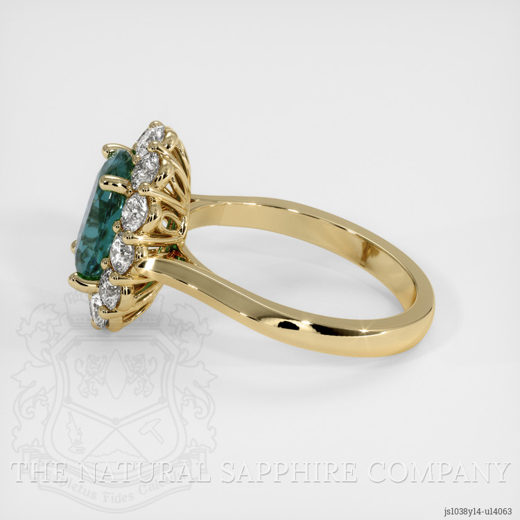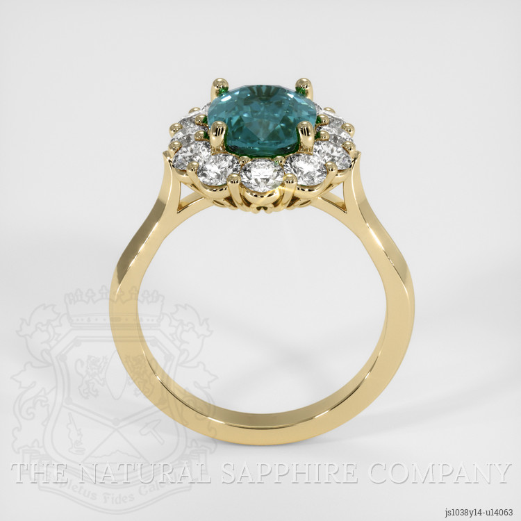 Antique Style Bluish Green Sapphire Ring 3.24 Ct., 14K Yellow Gold
