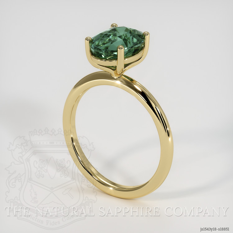 Solitaire Bluish Green Sapphire Ring 3.51 Ct., 18K Yellow Gold