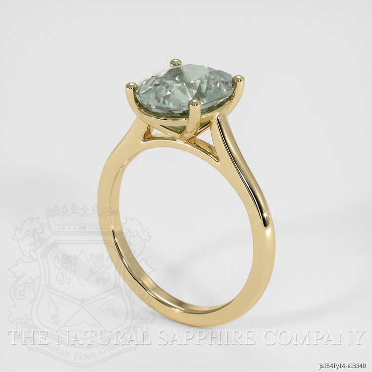 Solitaire Bluish Green Sapphire Ring 4.70 Ct., 14K Yellow Gold