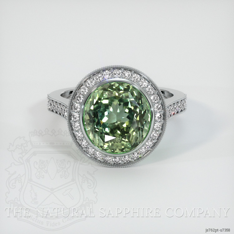 Pave Bluish Green Sapphire Ring 5.40 Ct., Platinum 950