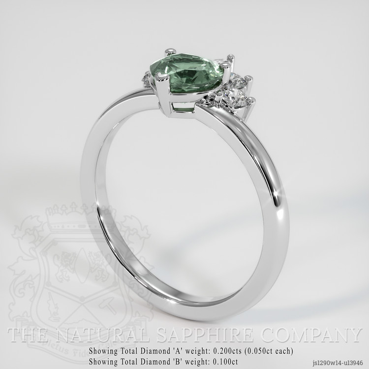 Accent Stones Bluish Green Sapphire Ring 1.07 Ct., 14K White Gold