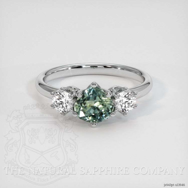 Antique Style Bluish Green Sapphire Ring 1.07 Ct., Platinum 950