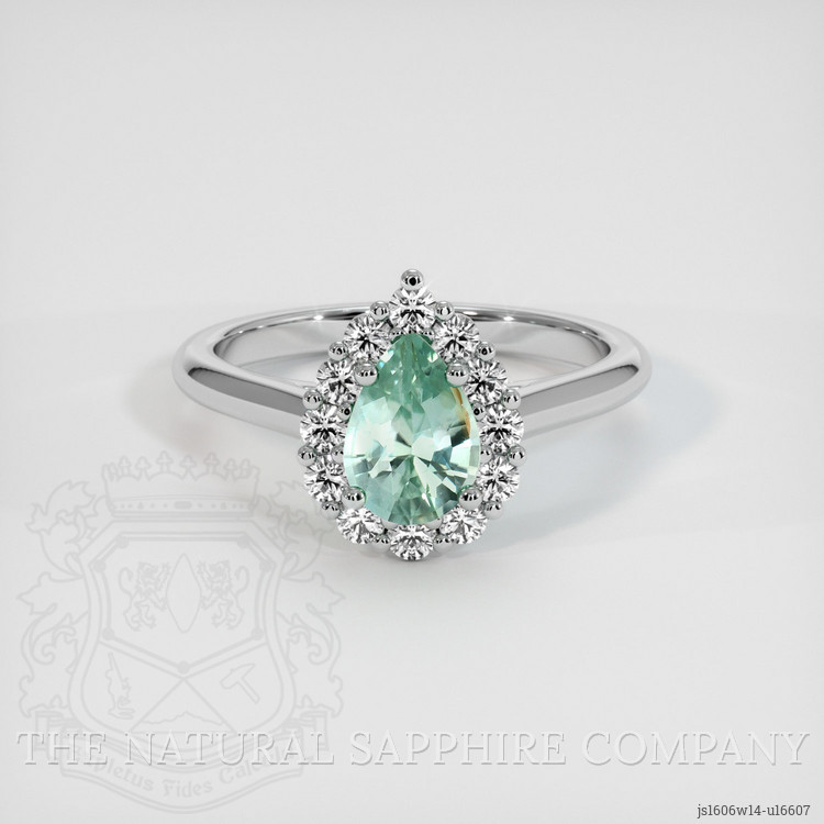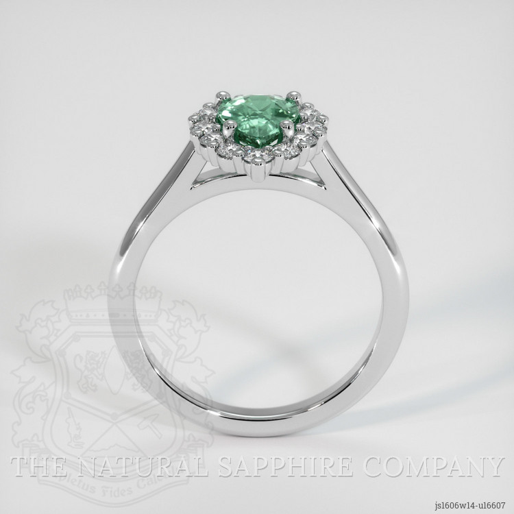 Halo Bluish Green Sapphire Ring 1.14 Ct., 14K White Gold