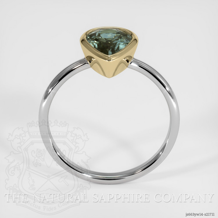 Vedic Bluish Green Sapphire Ring 3.11 Ct., 14K Yellow & White
