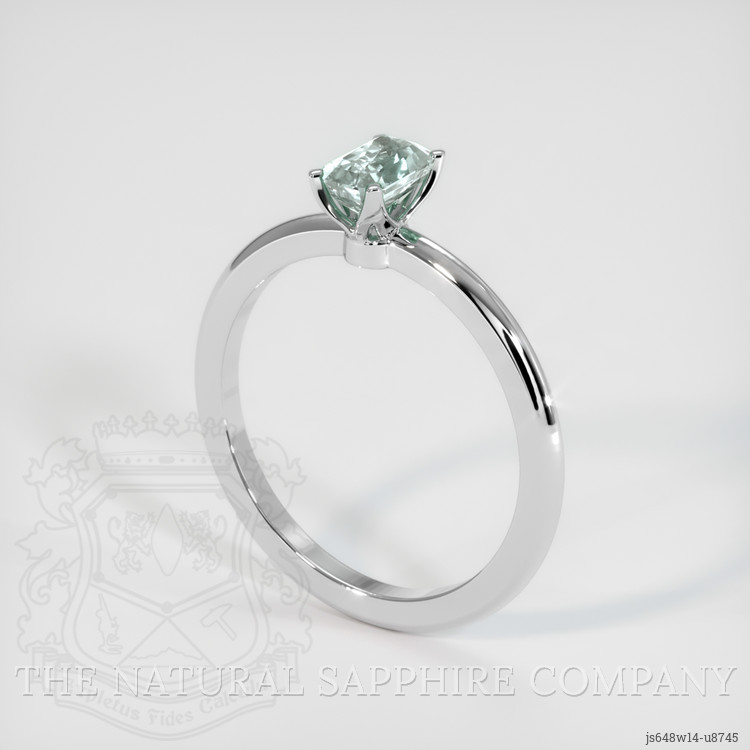 Solitaire Bluish Green Sapphire Ring 0.76 Ct., 14K White Gold