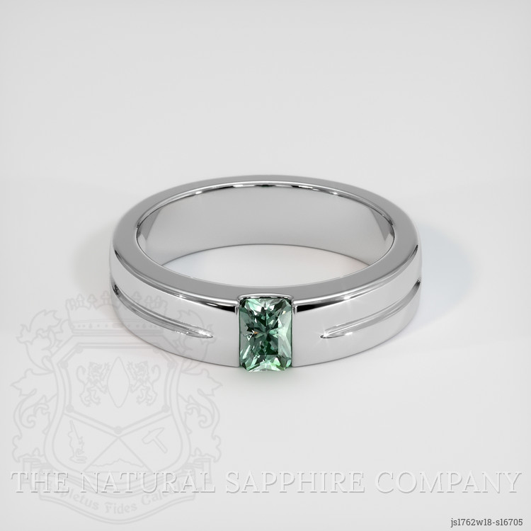 Men's Bluish Green Sapphire Ring 0.78 Ct., 18K White Gold