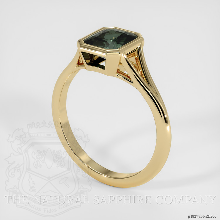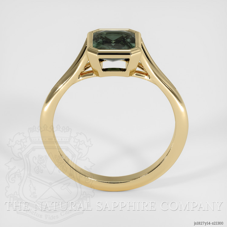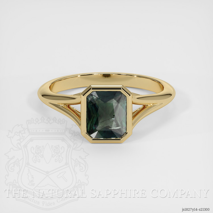 Bezel Bluish Green Sapphire Ring 1.61 Ct., 14K Yellow Gold