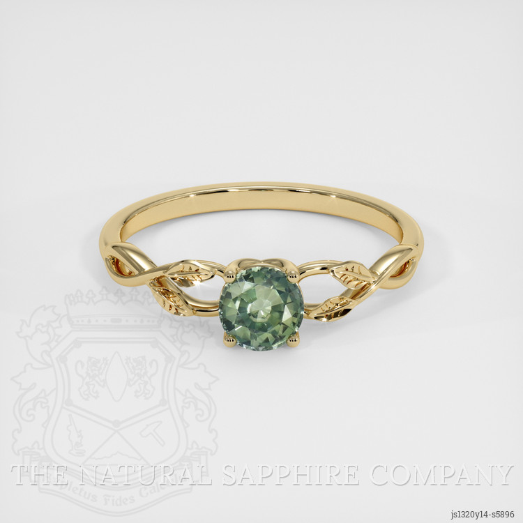 Floral Bluish Green Sapphire Ring 0.58 Ct., 14K Yellow Gold