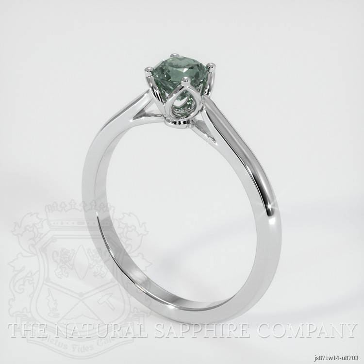 Floral Bluish Green Sapphire Ring 0.61 Ct., 14K White Gold