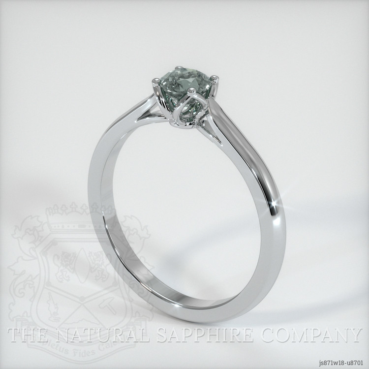 Floral Bluish Green Sapphire Ring 0.61 Ct., 18K White Gold