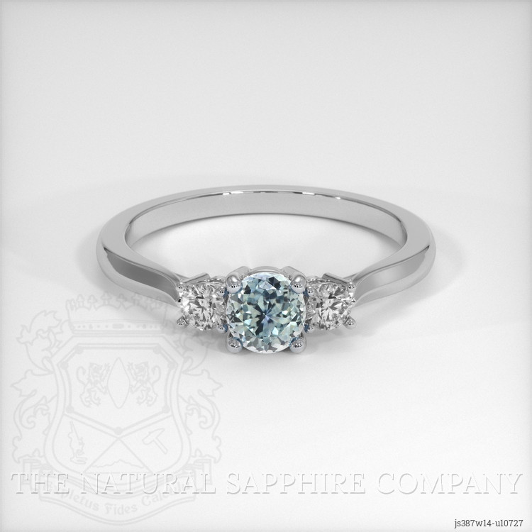 Three Stone Bluish Green Sapphire Ring 0.64 Ct., 14K White Gold