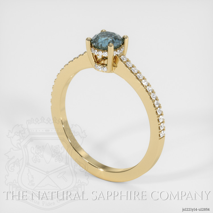 Pave Bluish Green Sapphire Ring 0.64 Ct., 14K Yellow Gold