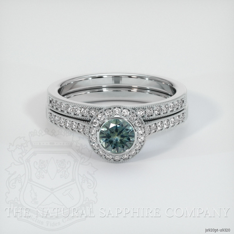 Pave Bluish Green Sapphire Ring 0.65 Ct., Platinum 950