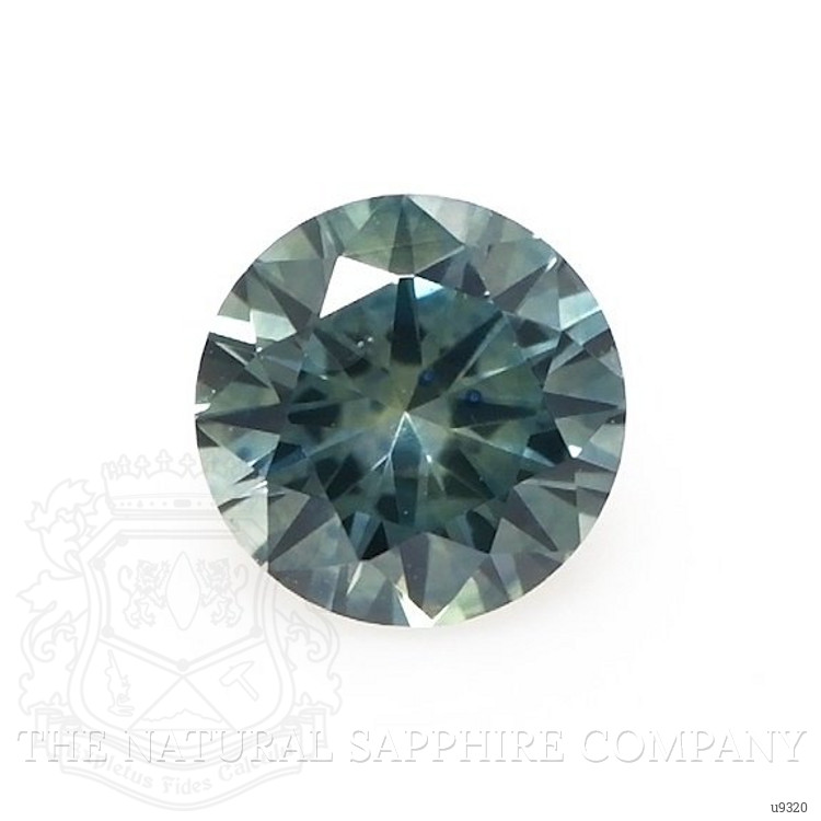 The ring features a beautiful, transparent 0.65 carat round shape bluish green sapphire with the dimensions of 5.22 x 5.21 x 3.44 mm and a brilliant cut. It has a clarity grade of very slightly included (evaluated at eye level), intense color saturation, and an excellent polish. The origin of this sapphire is Montana.