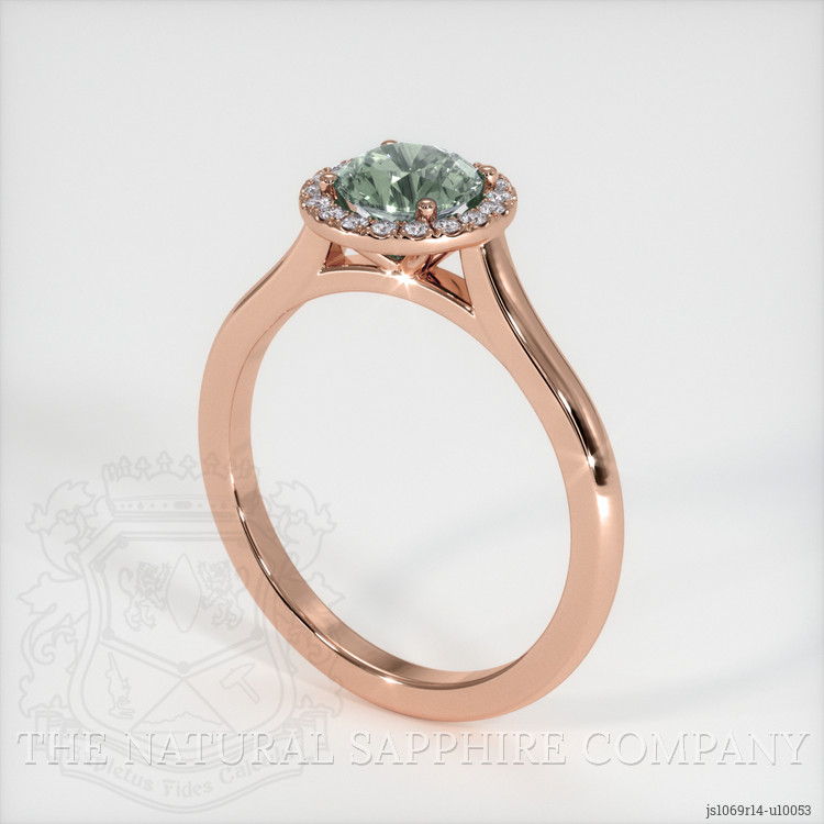 Pave Bluish Green Sapphire Ring 0.94 Ct., 14K Rose Gold