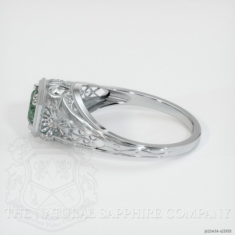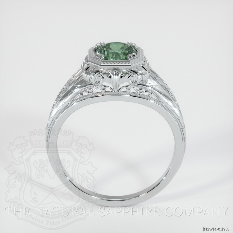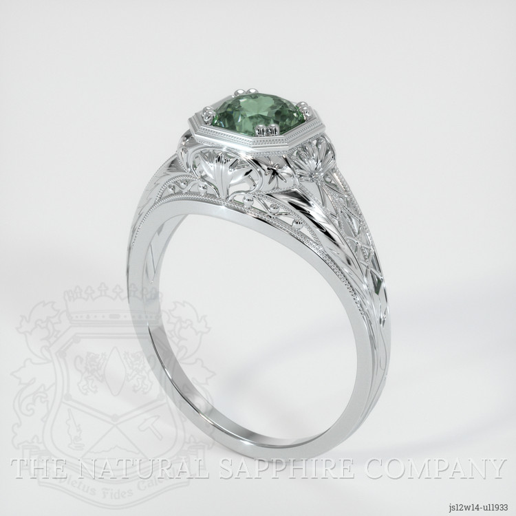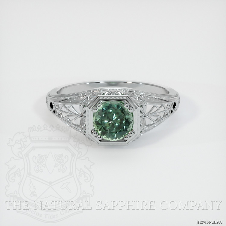 Antique Style Bluish Green Sapphire Ring 1.01 Ct., 14K White Gold