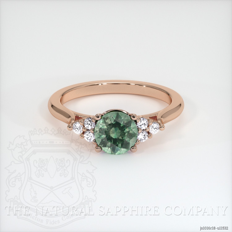 Accent Stones Bluish Green Sapphire Ring 1.01 Ct., 18K Rose Gold