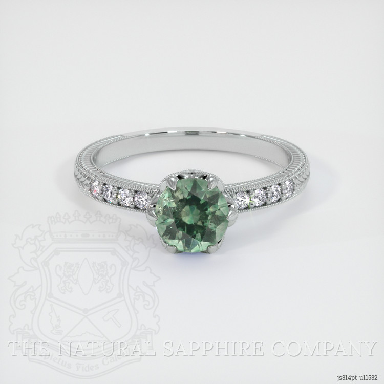 Antique Style Bluish Green Sapphire Ring 1.01 Ct., Platinum 950