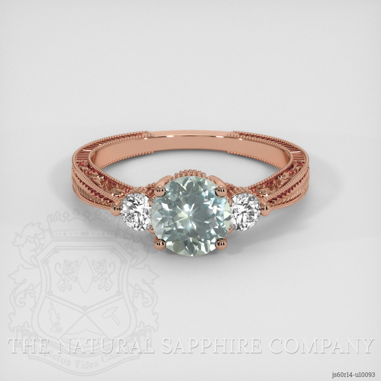 Antique Style Bluish Green Sapphire Ring 1.20 Ct., 14K Rose Gold