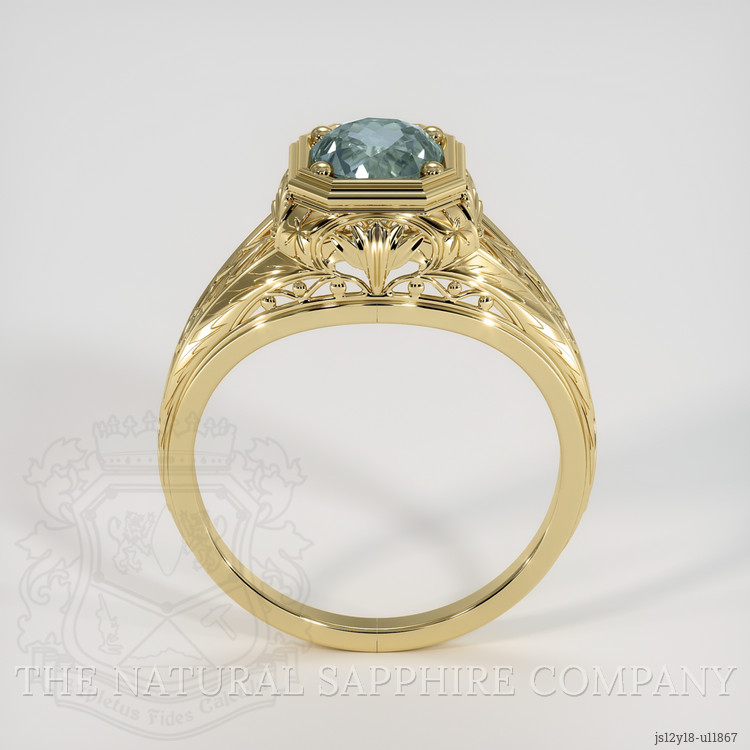 Antique Style Bluish Green Sapphire Ring 1.53 Ct., 18K Yellow Gold