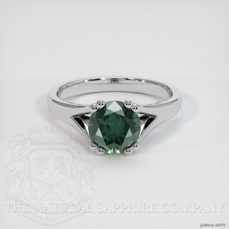 Solitaire Bluish Green Sapphire Ring 1.74 Ct., 14K White Gold