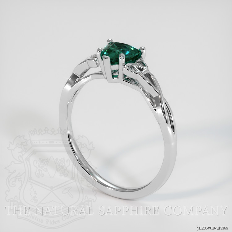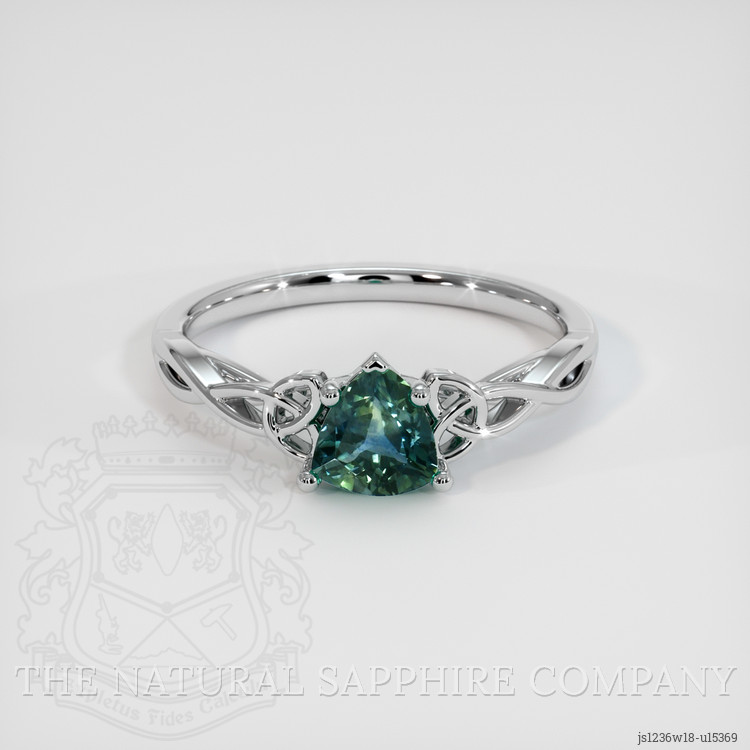Celtic Bluish Green Sapphire Ring 0.83 Ct., 18K White Gold