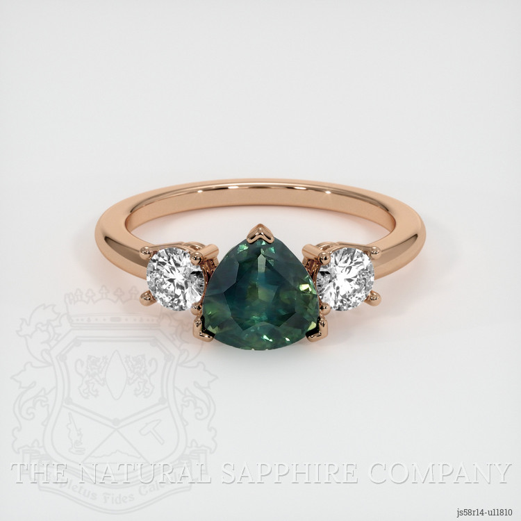 Three Stone Bluish Green Sapphire Ring 1.65 Ct., 14K Rose Gold