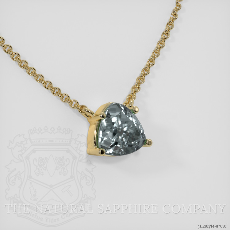 Solitaire Bluish Grey Sapphire Necklace 0.93 Ct., 14K Yellow Gold