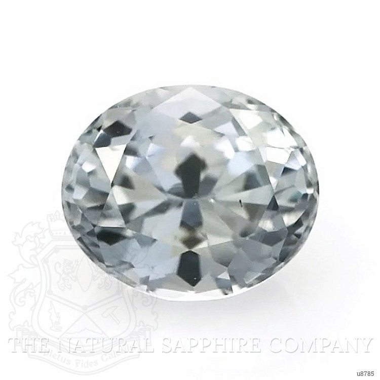 The men's ring features a beautiful, transparent 0.94 carat oval shape bluish grey sapphire with the dimensions of 6.10 x 5.16 x 3.77 mm and a mixed brilliant cut. It has a clarity grade of very slightly included (evaluated at eye level), medium light color saturation, and an excellent polish. The origin of this sapphire is Montana.