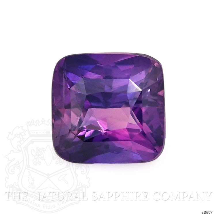 This exceptional ring captures an air of exclusivity and luxury that truly sets it apart in the realm of fine jewelry. Discover the allure of a bespoke masterpiece crafted for those who appreciate the finer things in life. At the heart of this extraordinary piece lies a stunning 1.56 carat cushion-shaped bluish-purple sapphire known for its remarkable transparency and elegance. With dimensions of 6.41 by 6.27 by 4.05 millimeters and featuring a mixed brilliant cut the sapphire radiates an intense color saturation that captivates the beholder. Its clarity grade stands at very slightly included ensuring that while minor inclusions exist they are not visible to the naked eye and do not detract from the gem’s overall beauty.