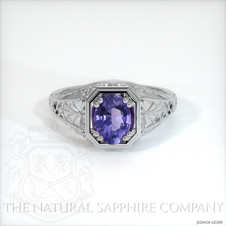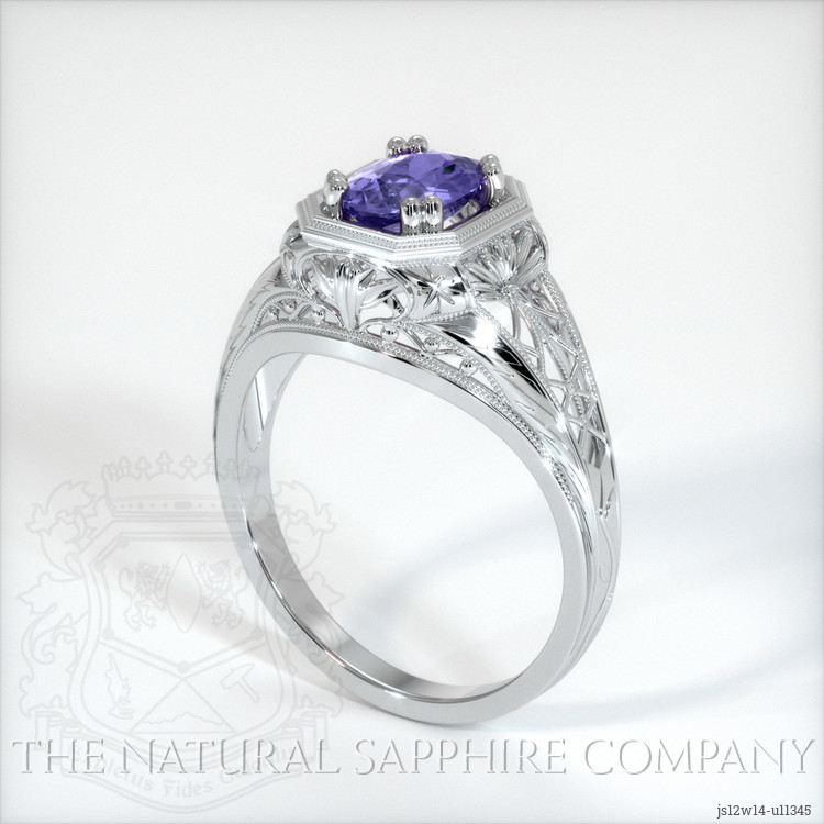 Antique Style Bluish Purple Sapphire Ring 0.85 Ct., 14K White Gold