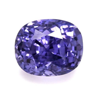 The pendant features a beautiful, transparent 4.28 carat cushion shape color change sapphire with the dimensions of 8.57 x 7.14 x 7.43 mm and a mixed brilliant cut. It has a clarity grade of eye clean (evaluated at eye level), vivid color saturation, and an excellent polish. The origin of this sapphire is Ceylon (Sri Lanka).