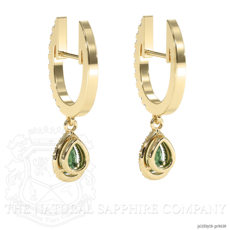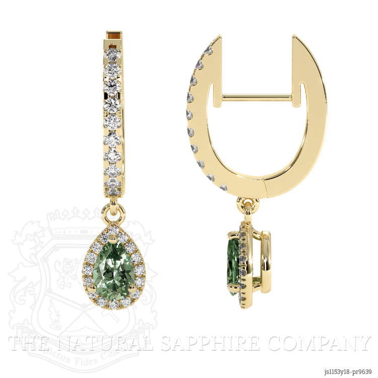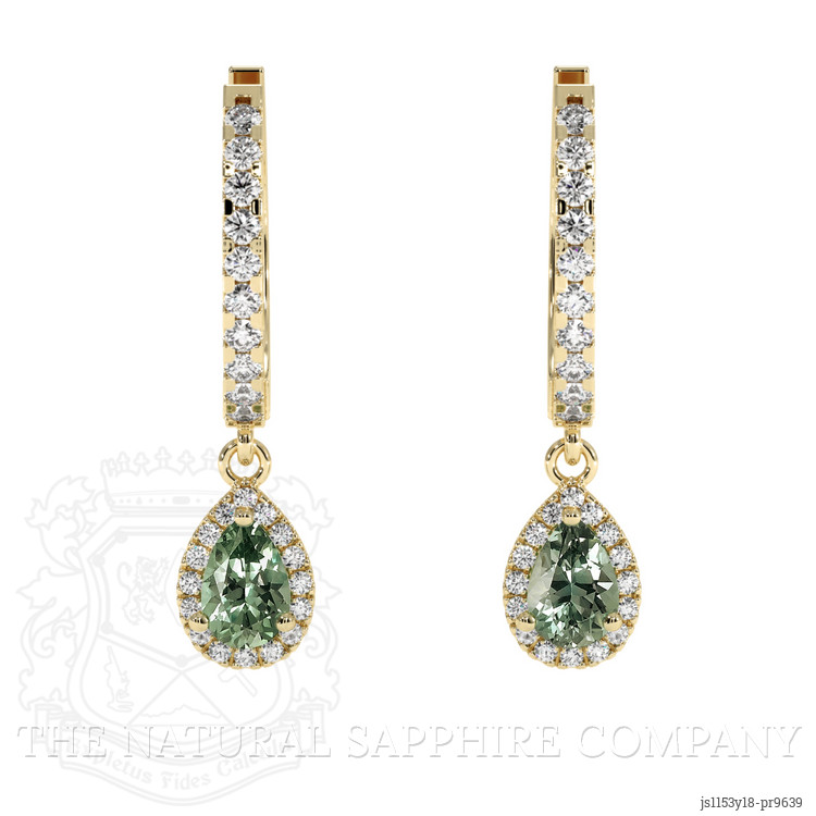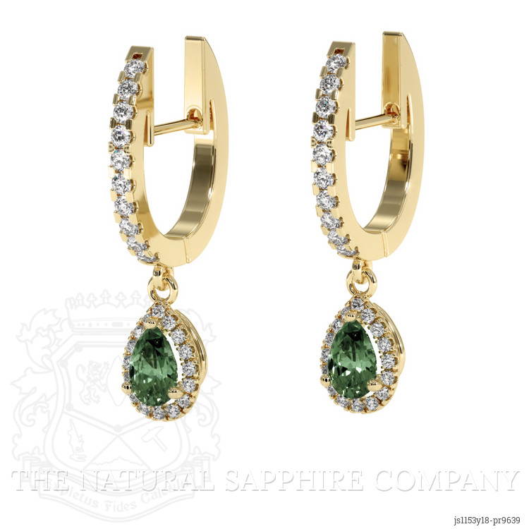 These earrings boast a pair of stunning pear-shaped green sapphires, weighing a total of 0.85 carats. Sourced from the enchanting landscapes of Montana, these sapphires reflect not only the spectacular essence of the earth but also the passion and meticulous craftsmanship we dedicate to every piece at The Natural Sapphire Company. Their medium intense color and excellent polish highlight the commitment to quality, while the clarity, evaluated as very slightly included, adds depth and character. Each sapphire whispers a story of authenticity, touched by nature, and gently enhanced through heat treatment.